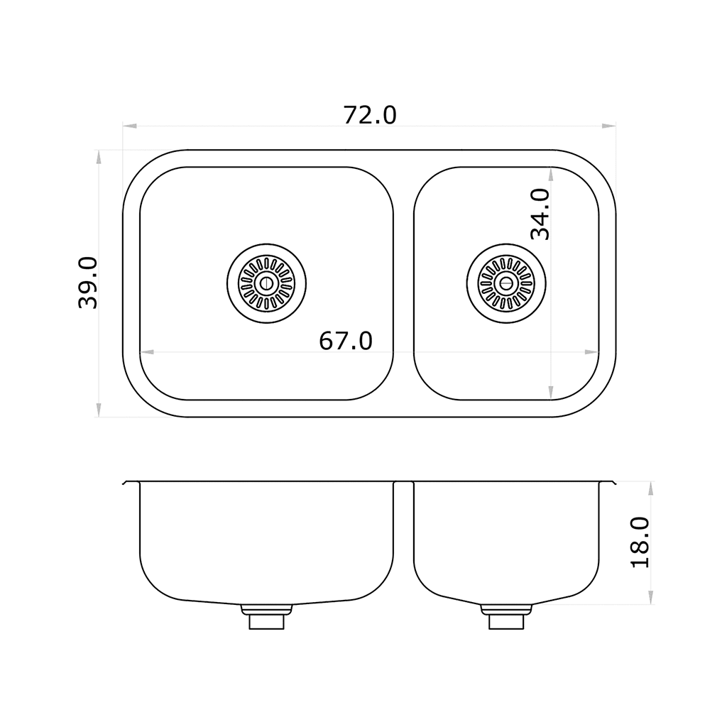 - Dimensiones: 34cm de ancho x 67cm de largo x 18cm de profundidad x 0.8mm de espesor.