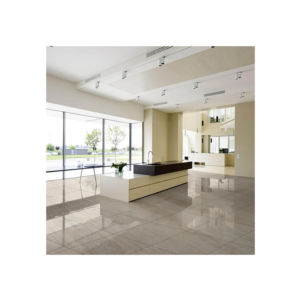 Inspirado en la belleza natural del travertino, este porcelanato combina tonos crema y arena que aportan calidez y sofisticación a cualquier espacio. Su formato de 57×57 cm ofrece una apariencia uniforme y moderna, perfecta para ambientes amplios o de estilo minimalista.